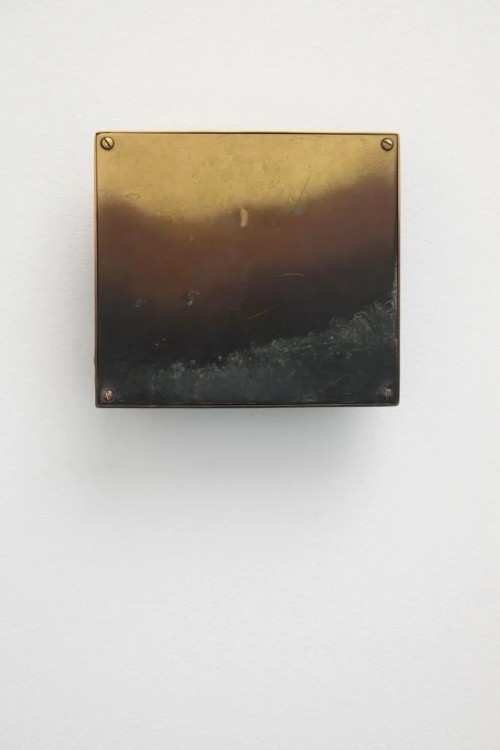The four brass door handles of the Van Abbemuseum. Hundreds of thousands of people have used them to enter the building over the course of more than fifty years. With each touch, the acid from their handprints has eroded the material bit by bit, leaving a polished patina. In this way, visitors imperceptibly connect to form an invisible network.