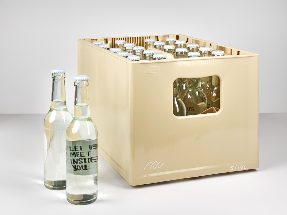 tap from artist’s studio, water, bottles, stamps, capper, crates variable dimensions (price incl. 9% vat)